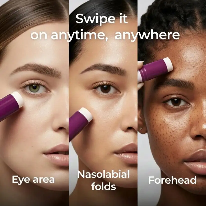 Compact stick format fits in any bag. One quick swipe = lifted skin all day.