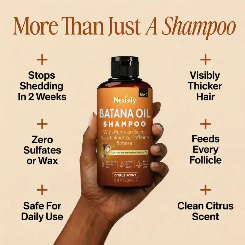 Raw Batana Oil, traditionally harvested by the Miskito, nourishes follicles for thick, strong, rooted hair and supports fast growth, making it safe for 100% daily use. Unlike mass-produced products filled with sulfates and industrial detergents that strip away natural protection, cause thin, brittle strands, falling hair, clogged pores, and scalp itch, Batana Oil keeps your hair and scalp healthy, protected, and naturally vibrant.
